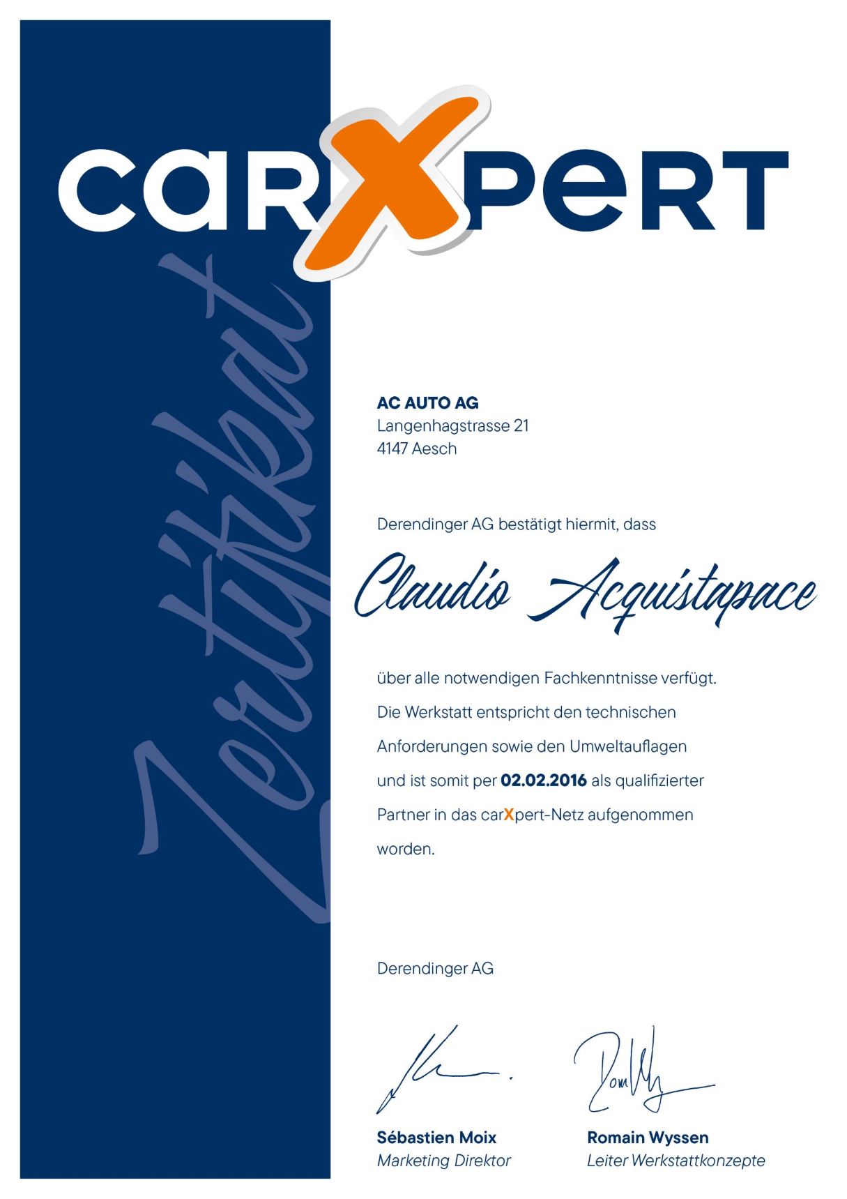 Unsere Werkstatt ist carXpert Partner und erfüllt alle Standards und Normen in Ausbildung und Zertifizierung, Infrastruktur, Materialverwendung (Ersatzteile, Verbrauchsmaterial, usw.) und im Kundendienst.